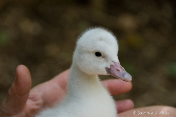 This particular day, we had two grandchildren with us and we had been watching the Raptors. Along came a lady keeper and sat down with us and was carrying a pouch and all of a sudden out popped this cute and fluffy cygnet (baby swan). Its mother had died and this lovely person was ‘bringing it up’ till it could join the other Trumpeter Swans.