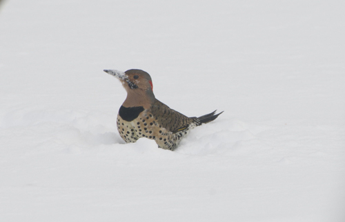 NORTHERN FLICKER – DON’T I LOOK CUTE WITH SNOW ON MY BEAK?