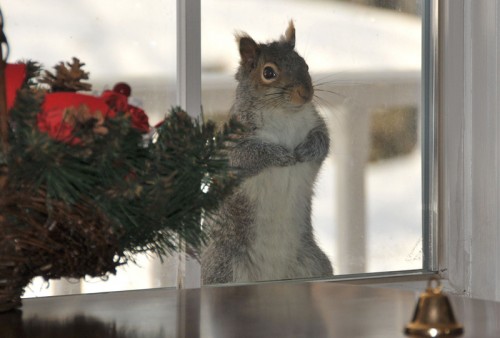 When the food runs out in the feeder, the animals are quick to jump up on the sill and look in the windows at us. Never would I have given them credit for that! It is the only time they do that.