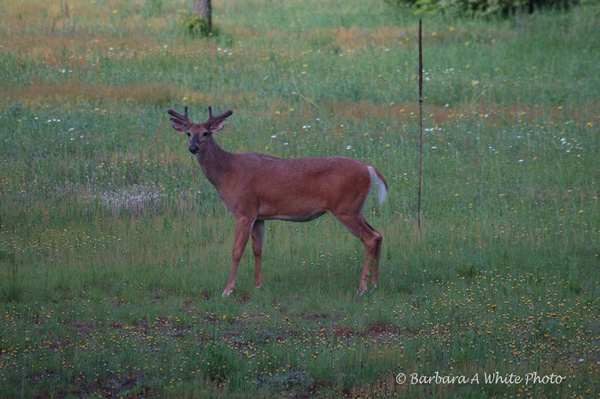 The deer frequent the field behind our house in the spring. This handsome buck has the beginnings of his antlers..