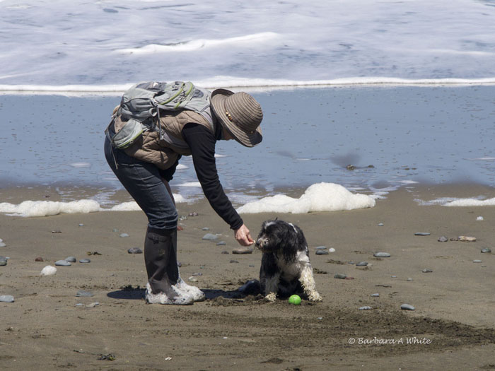 Yes,this lady had a ball and was throwing it into the surf for her dog.