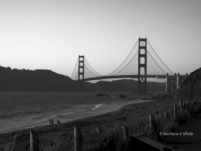 It is the Golden Gate Bridge. The photo was taken at dusk.