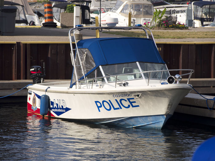 This next one is the Bell Telephone boat that works around one of the lakes. Many of the houses can only be reached by boat so this is the only way people can get repairs. It used to be that if there were no roads into the properties, there were no telephone lines either. Things have changed.