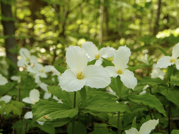 TRILLIUMS PEEKING OUT OF THE WOODS